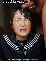 Natsumi - Pretty kogal Natsumi taking bukkake facials in seifuku uniform