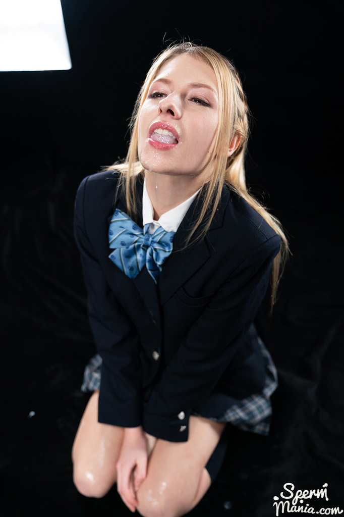 Volpetti rebecca kneeling in uniform head thrown back cum in her mouth